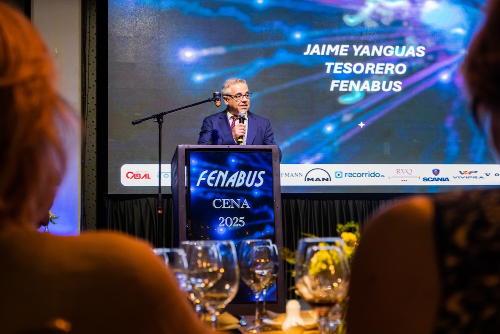 Posteriormente, el tesorero de FENABUS, Jaime Yanguas, ofreció un discurso de agradecimiento a los proveedores —Grupo Cabal, Comisa, Copec, Epysa Buses, Kaufmann, MAN, Recorrido.cl, Scania, Vivipra, Volvo Chile, RVQ, Weebfleet y Yutong— destacando el valor único que cada uno aporta al ecosistema del transporte. “Esta industria se construye en alianza… FENABUS debe seguir avanzando con más datos, evidencia y estrategias para enfrentar los desafíos que vienen”, sostuvo.