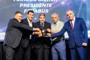El momento más emotivo de la velada fue el homenaje del directorio a Marcos Carter, presidente de FENABUS, quien cumplió 30 años liderando la institución. Sus colegas lo describieron como un líder firme, valiente y profundamente humano, que ha sostenido y guiado al gremio incluso en los periodos más complejos.