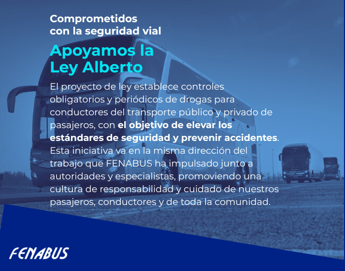 Como Federación Nacional de Buses de Chile valoramos que el Gobierno haya puesto urgencia al proyecto conocido como “Ley Alberto”, que establece controles obligatorios y periódicos de drogas para conductores del transporte público y privado de pasajeros, con el objetivo de elevar los estándares de seguridad.